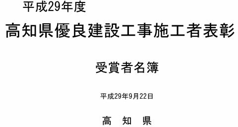 平成29年度高知県優良建設工事施行者表彰 【高知県知事賞受賞】